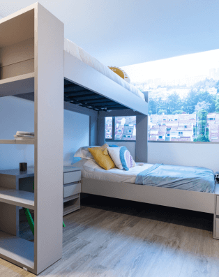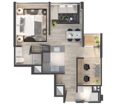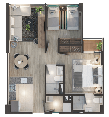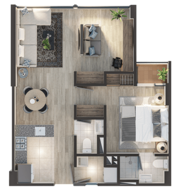 *Esta es una representación grafica ilustrativa del proyecto, con una sugerencia de amoblamiento y acabados. Durante el proceso constructivo se pueden presentar modificaciones en detalles de diseño y acabados.